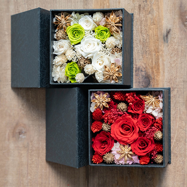 2025ホリデーシーズン限定のプリザーブドフラワーボックスです。